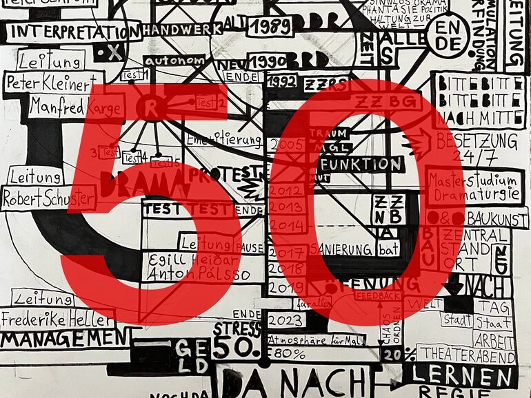 Studierende und Lehrende eröffnen gemeinsam den Dialog und nehmen diese Fragen zum Ausgangspunkt bei Rückblick, Positionsbestimmung und Ausblick für den Studiengang anlässlich des 50. Jubiläums der Schauspielregie an der HfS Ernst Busch. Verschiedene Formate und Veranstaltungen – darunter ein Dokumentartheaterprojekt von Regisseur Noam Brusilovsky, ein Zukunftsseminar mit DAAD-Gastdozenten Rodolfo García Vázquez und eine Lehrveranstaltung zum Thema Film – spüren im Jubiläumsjahr den aufgeworfenen Fragen nach und regen zum dialogischen Denken an. Dabei könnte beides gelingen: kritische Reflexion und Feier der Existenz.