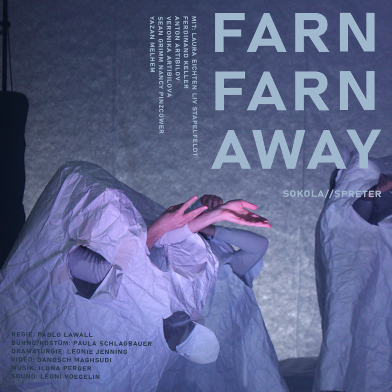 Schauplatz der Inszenierung ist das Skelett eines Ökosystems, wo alles knirscht und läuft und knirscht und knäuscht, wo kein Grün mehr ist. FARN FARN AWAY ist keine Dystopie, sondern eine lange Reise, eine Computergestalt, eine Tankstelle kurz vor der Peripherie. Die zweite Zusammenarbeit von Pablo Lawall, Sokola//Spreter und Paula Schlagbauer sucht nach pflanzlicher Intelligenz, der allerletzten Entschuldigung und der Antwort auf die Frage nach dem Ende der Wirklichkeit.