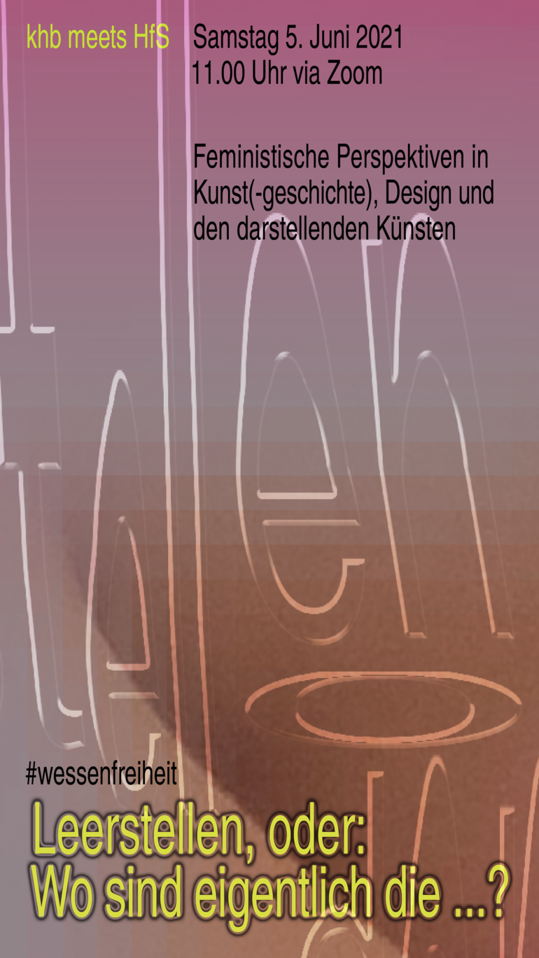 Unter diesem Motto findet der diesjährige Aktionstag #wessenfreiheit der Berliner Kunsthochschulen am 5. Juni 2021 ab 11 Ur via Zoom statt. Der Fokus liegt auf den unterschiedlichen feministischen Perspektiven in Kunst(-geschichte), Design und den darstellenden Künsten.